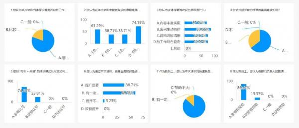 公司始終將培訓評估視為檢驗培訓成果、優(yōu)化培訓體系的重要抓手。在7月開展的員工業(yè)務能力提升專項培訓結束后,相關部門精心設計了涵蓋課程內容實用性、與工作的貼合度、講師授課水平、培訓組織安排等多個方面的調查問卷,通過線上方式發(fā)放給參訓員工,確保全面收集大家對培訓各環(huán)節(jié)的真實評價。在收到的31份調查問卷中,80%的參訓人員認為課程設置“非常貼合”工作實際,97%的參訓人員認為通過培訓,自身業(yè)務水平“有所提升”。培訓管理部門通過對培訓工作中的經驗與不足進行深度總結,形成閉環(huán)管理模式,持續(xù)推動后續(xù)培訓方案不斷優(yōu)化,推動培訓質量有效提升,助力員工實現(xiàn)全面進階,為公司高質量發(fā)展凝聚人才合力。